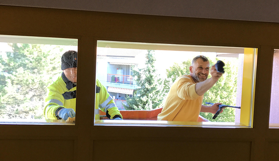- Lépcsőház takarítás + üveg takarítása emelődaruval